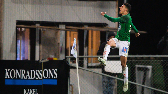 Alexander Jallow satte båda målen i den andra halvleken mot GAIS, som nu är inblandade i kampen om att undvika kvalplats på allvar.