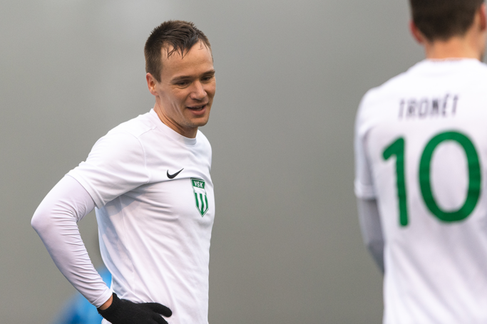 Väl i förlägningen tog det sju minuter innan VSK tog ledningen. Efter en hörna och flipperspel i straffområdet hamnade bollen framför fötterna på Sean Sabetkar som tryckte bollen i nät.